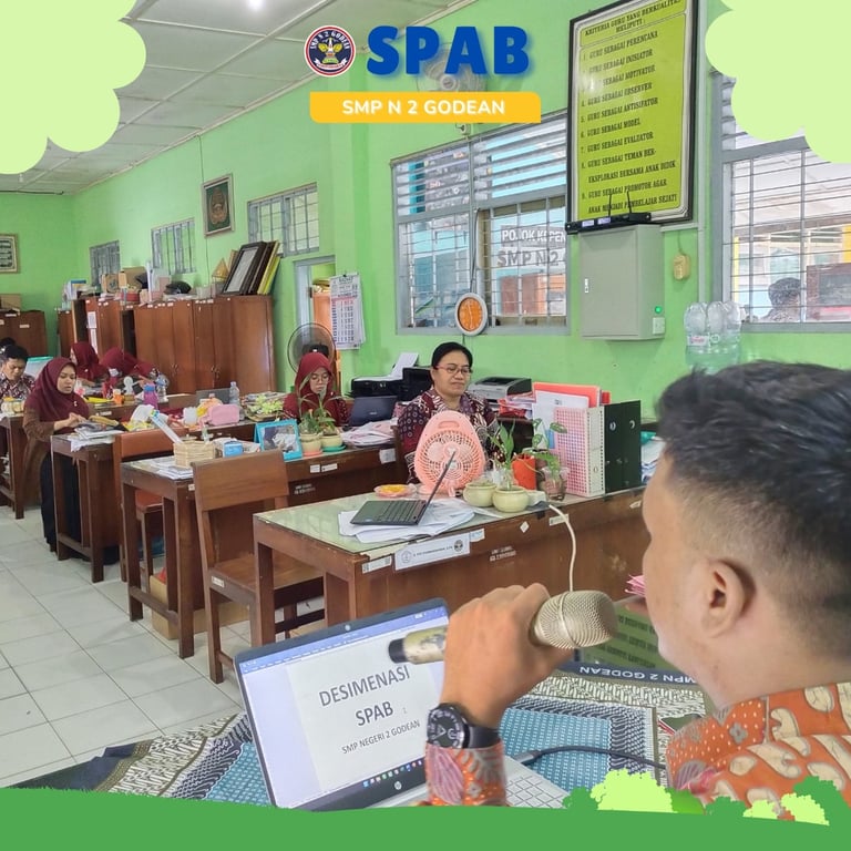 Pada hari Senin, 2 Desember 2024, SMP Negeri 2 Godean mengadakan kegiatan Diseminasi dan Pembentukan Tim Satuan Pendidikan Aman Bencana (SPAB). Kegiatan ini dilaksanakan di kantor guru mulai pukul 14.10 WIB hingga 15.00 WIB, diikuti oleh seluruh guru dengan penuh antusiasme.