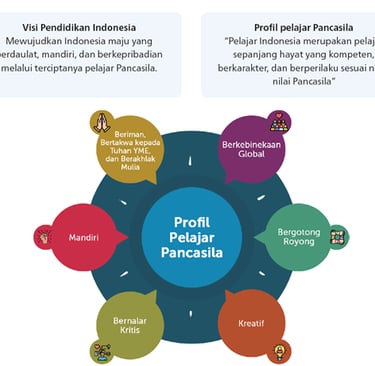 Pelaksanaan Projek Penguatan Profil Pelajar Pancasila mengacu pada enam dimensi Profil Pelajar Pancasila seperti pada diagram berikut (Rizky Satria, 2022):